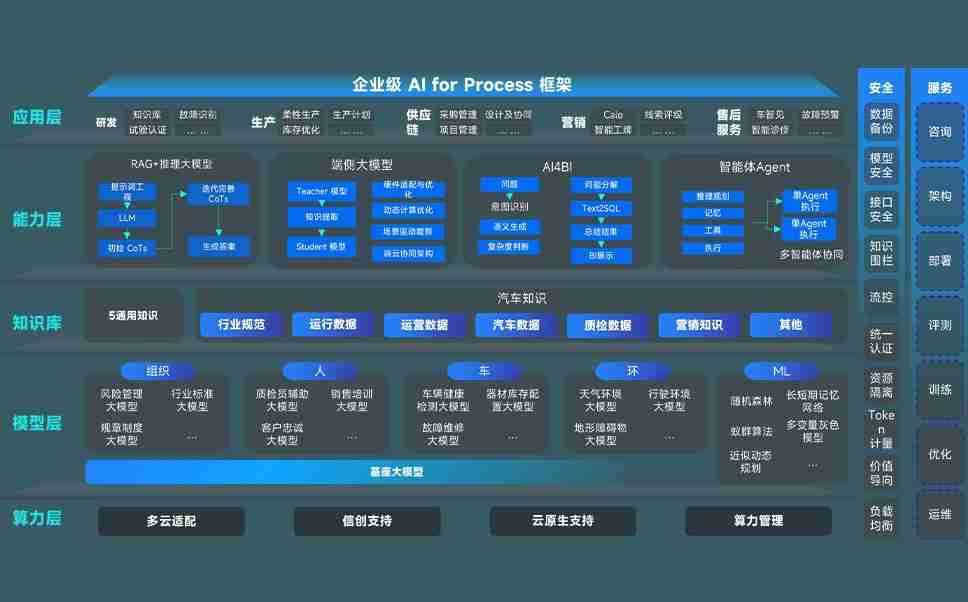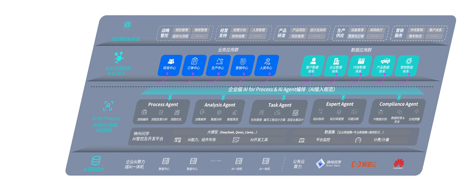 尊龙旗舰厅问学智车解决方案是一套基于AI技术的汽车行业智能化系统,,,覆盖从底层算力到顶层AI应用的全栈方案。。。。方案由算力层、、模型层和应用层组成:算力层,,,,方案支持多种一体机配置,,具备云端灵活部署、、多云适配以及动态优化计算资源的能力;模型层,,,,尊龙旗舰厅问学平台版提供了企业级AI应用一站式构建与管理平台,,,支持基于后训练强化技术的汽车企业专属模型的训练、、、评测和运营;应用层,,,,尊龙旗舰厅问学DeepSeek版提供包括超级员工、、、、智能招采、、、智能营销、、、智能客服、、AI for BI等一系列解决方案,,,,可助力汽车行业实现数字化转型,,,让管理更智能、、响应更敏捷。。。。